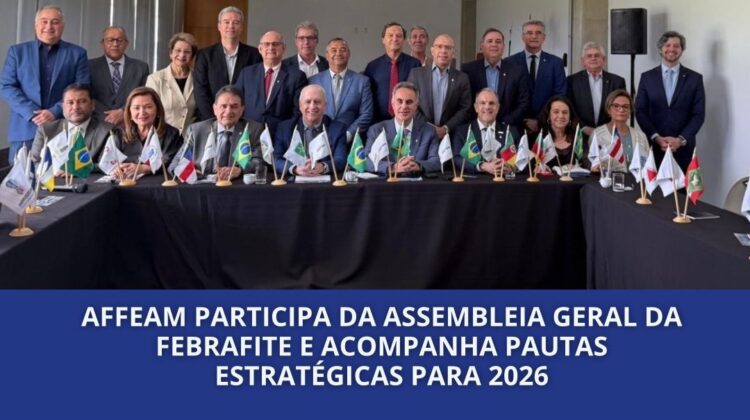 AFFEAM participa da Assembleia Geral da Febrafite e acompanha pautas importantes para a federação e associações filiadas 21/11/2025 220 Views Compartilhar AFFEAM...